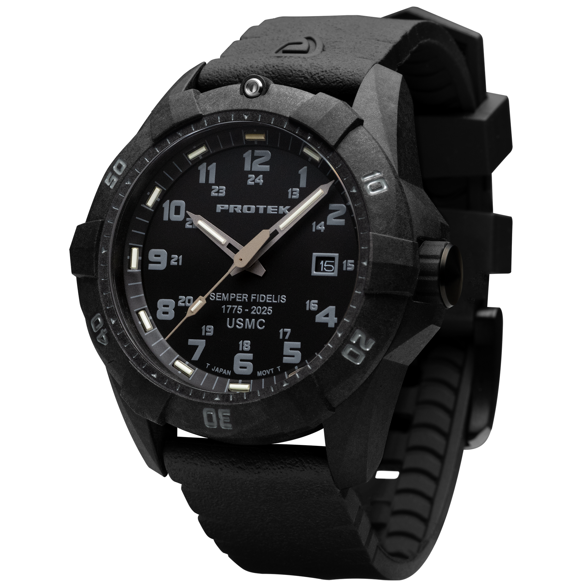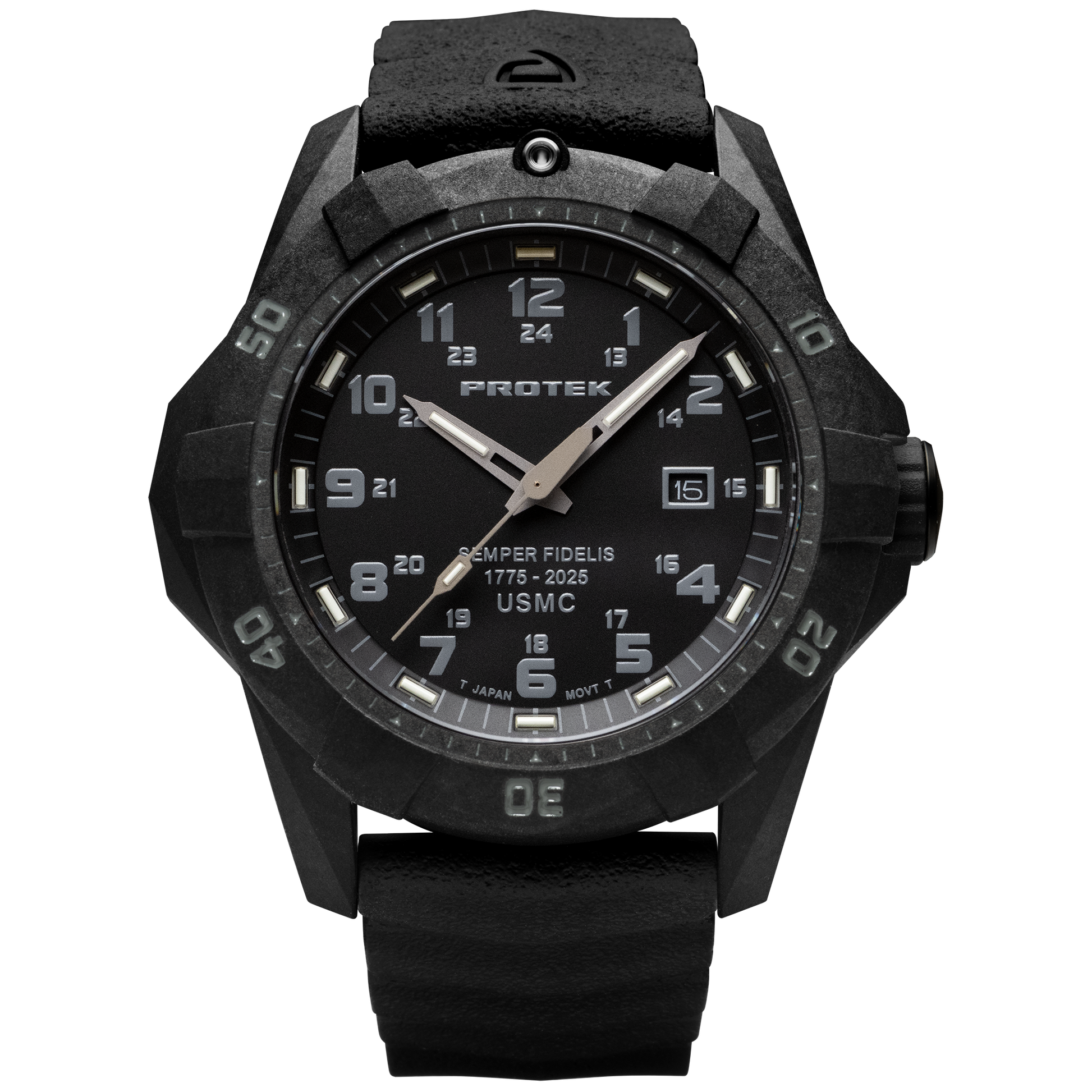 A marine corps watch, the Model PT1011SF USMC is designed with durability in mind. Made to withstand tough tactical environments, it features tritium lume technology for easy visibility in low light situations. This USMC watch is a reliable companion for any dive or mission.