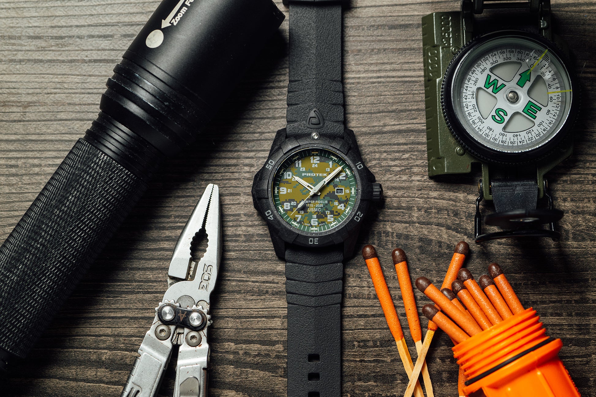 A marine corps watch, the Model PT1015SFC USMC is designed with durability in mind. Made to withstand tough tactical environments, it features tritium lume technology for easy visibility in low light situations. This USMC watch is a reliable companion for any dive or mission.