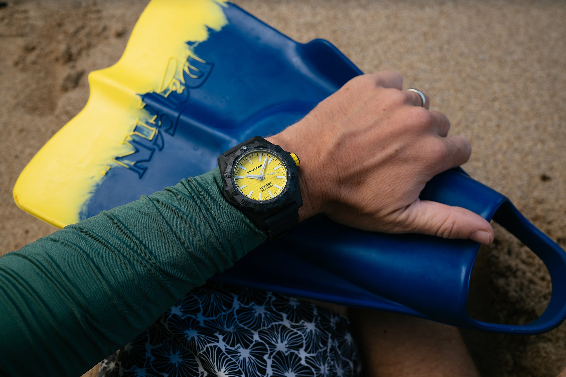 45mm Carbon Composite Case and 60-click Unidirectional Ratcheting Dive Timing Bezel |