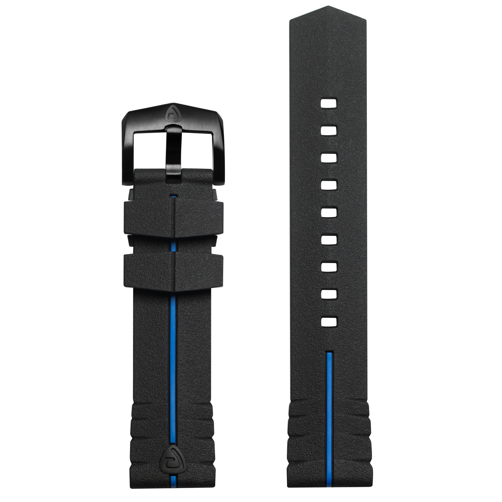Genuine Rubber Strap (22mm x 20mm) with Steel Tube Molded into the Rubber for Additional Durability: Dark Charcoal with Thin Blue Line |