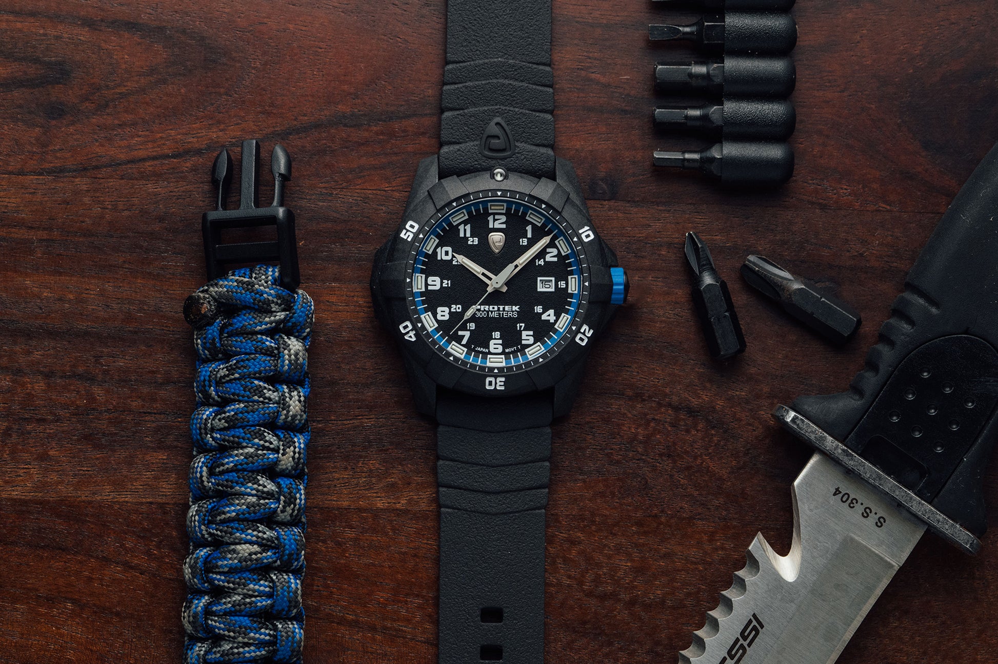 The Model PT1003 is a reliable tactical watch, equipped with tritium for low light visibility and designed for divers. With its precise timekeeping and durable build, this expertly crafted watch is perfect for those in demanding situations. Trust in its functionality and accuracy for every mission.