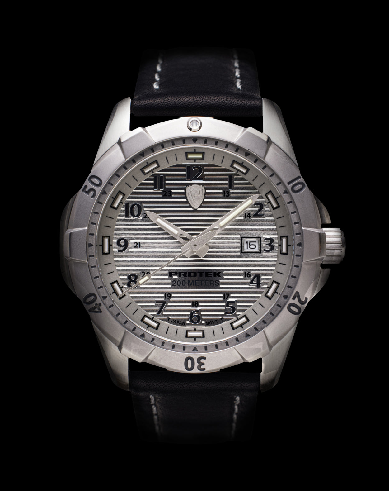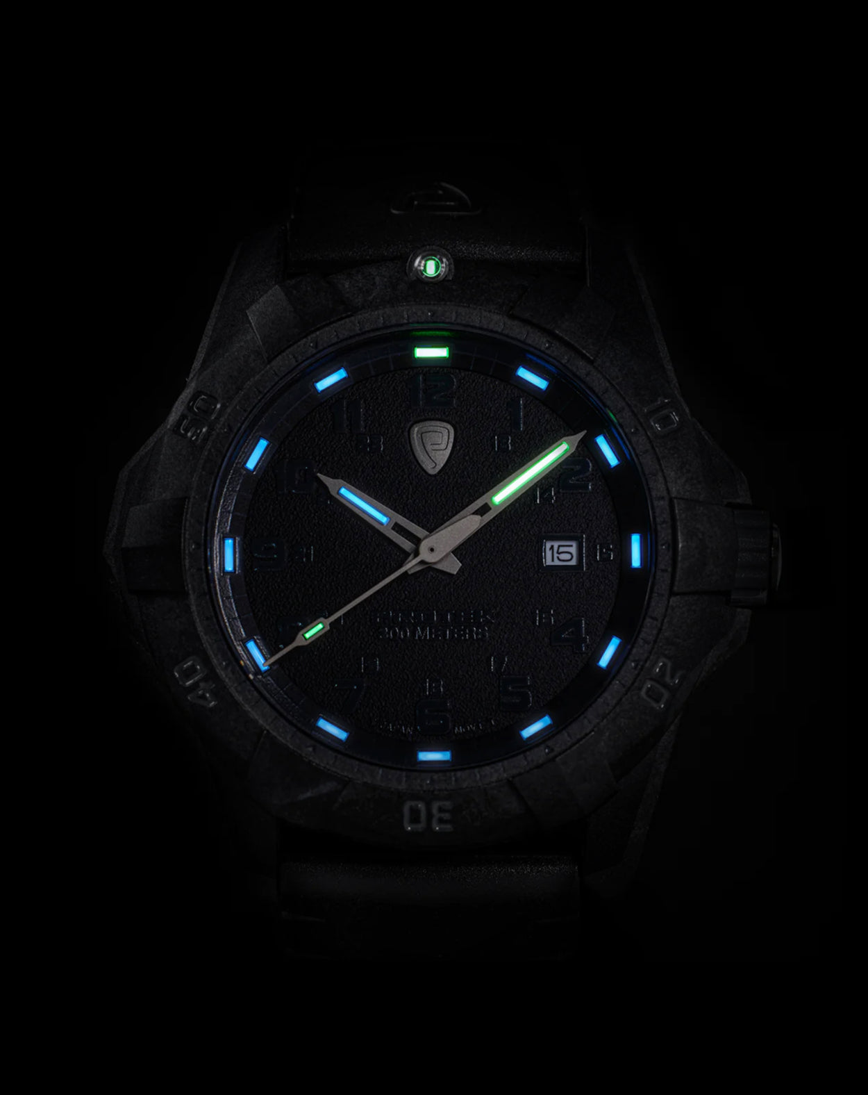 This 42mm stainless steel dive watch offers a perfect balance of durability and elegance, featuring a 120-click unidirectional bezel, 200-meter water resistance, and a reliable Citizen/Miyota quartz movement with a 10-year battery. The Swiss Pro-Glo T25 tritium illumination system provides continuous, bright visibility for 25 years, making it ideal for low-light environments. With a waterproof Italian leather strap and a scratch-resistant sapphire crystal, this watch is designed for both adventurous pursuits and refined everyday wear.