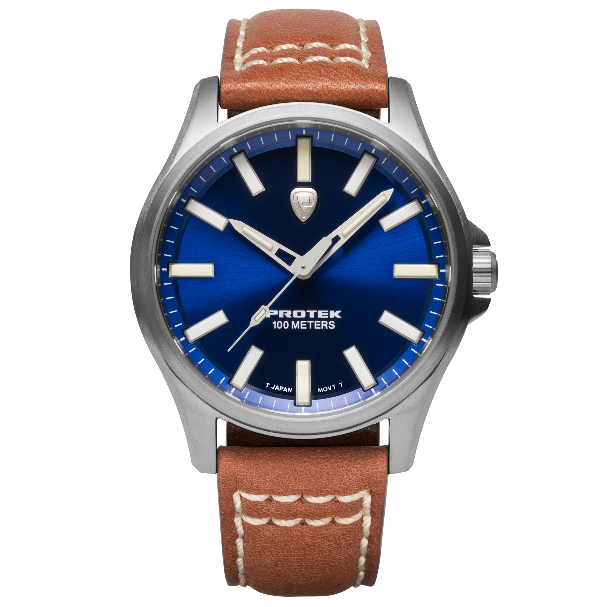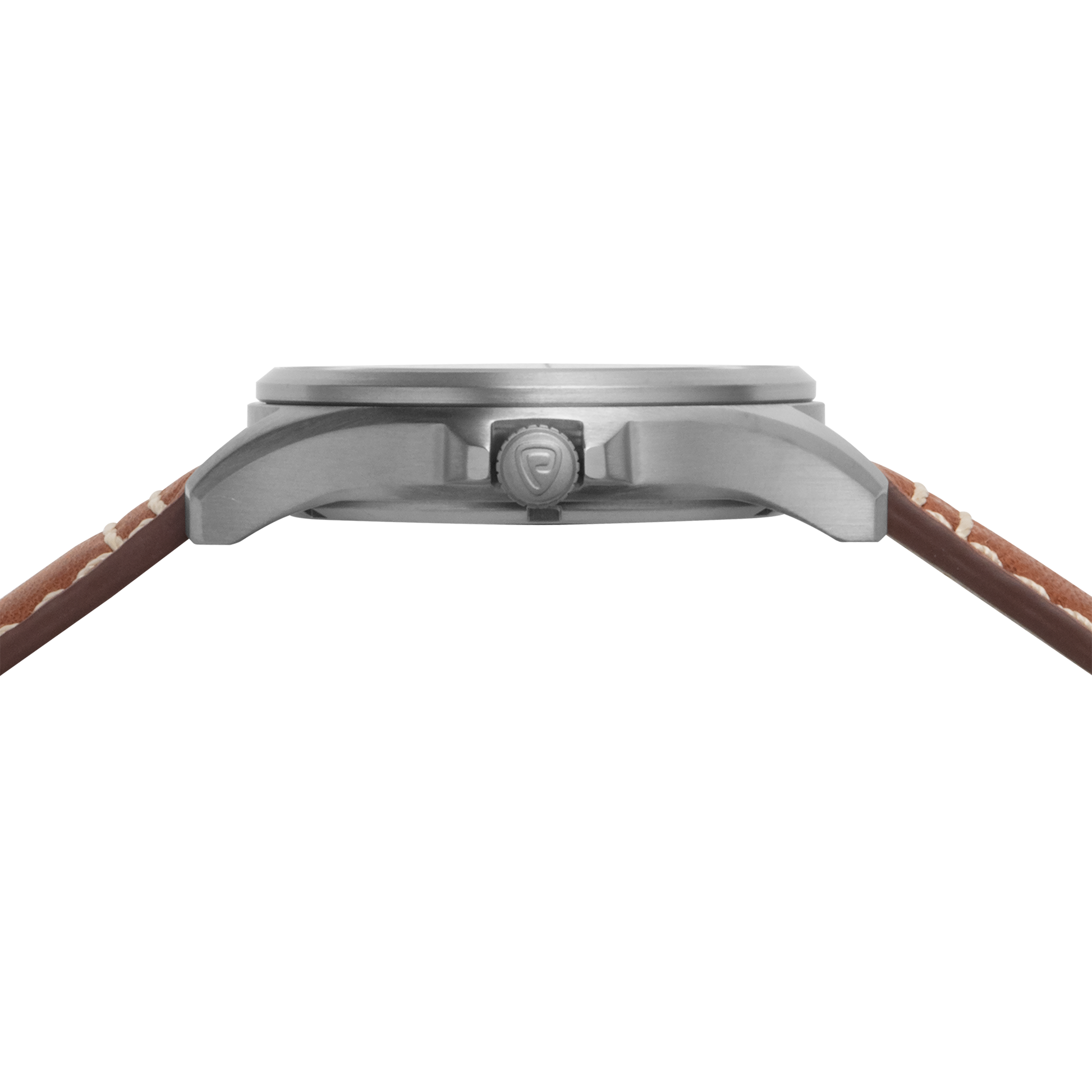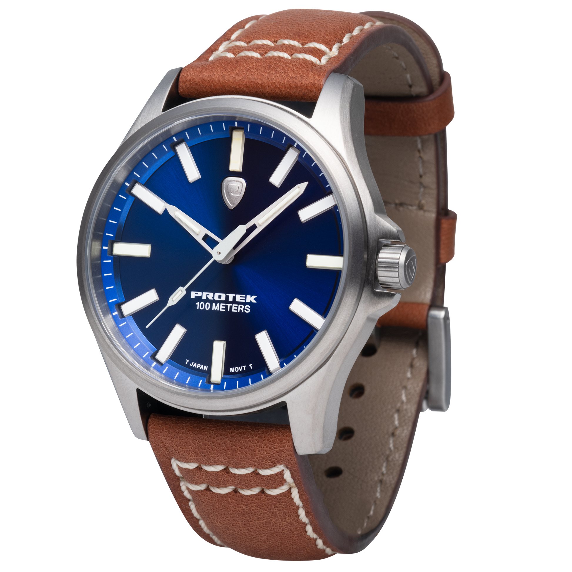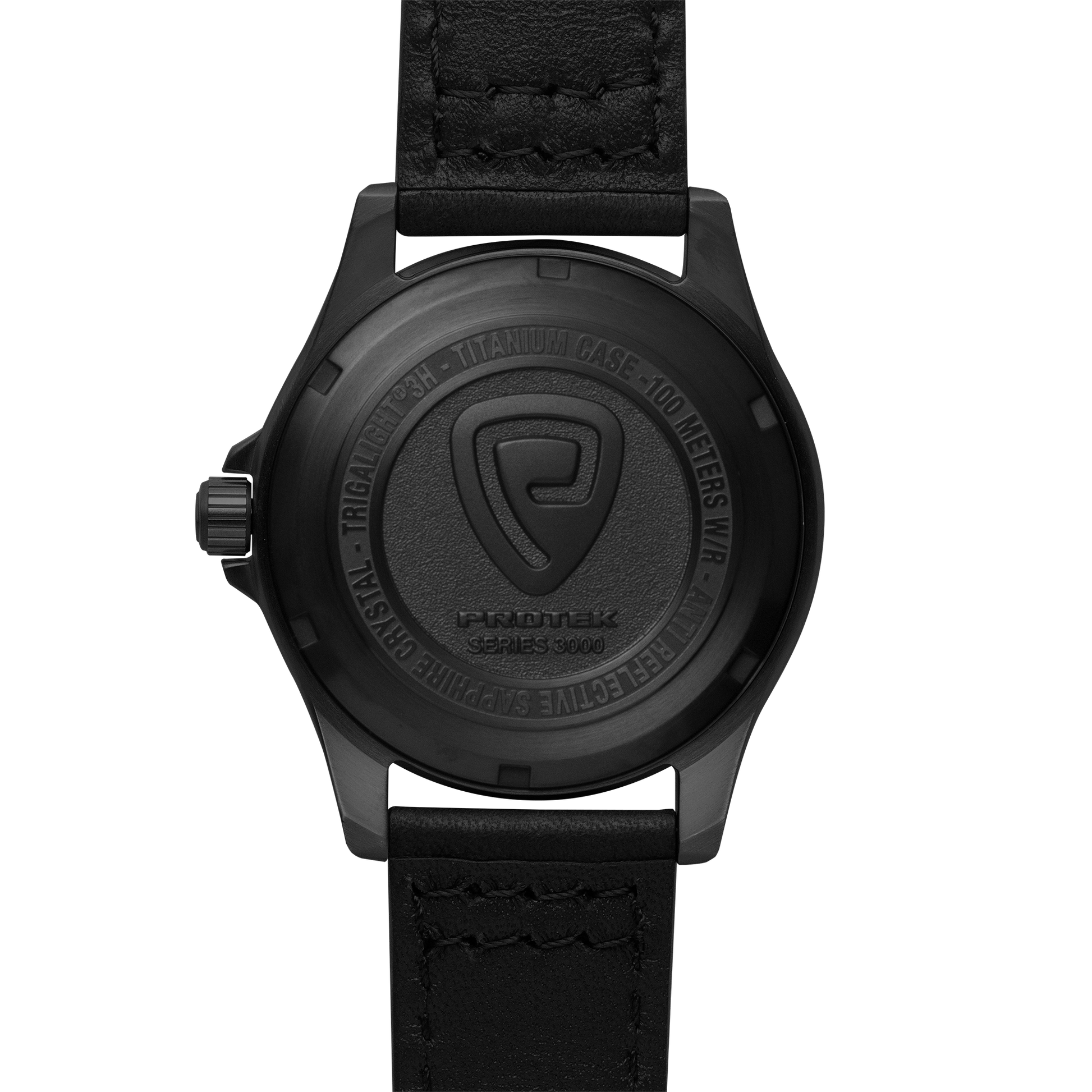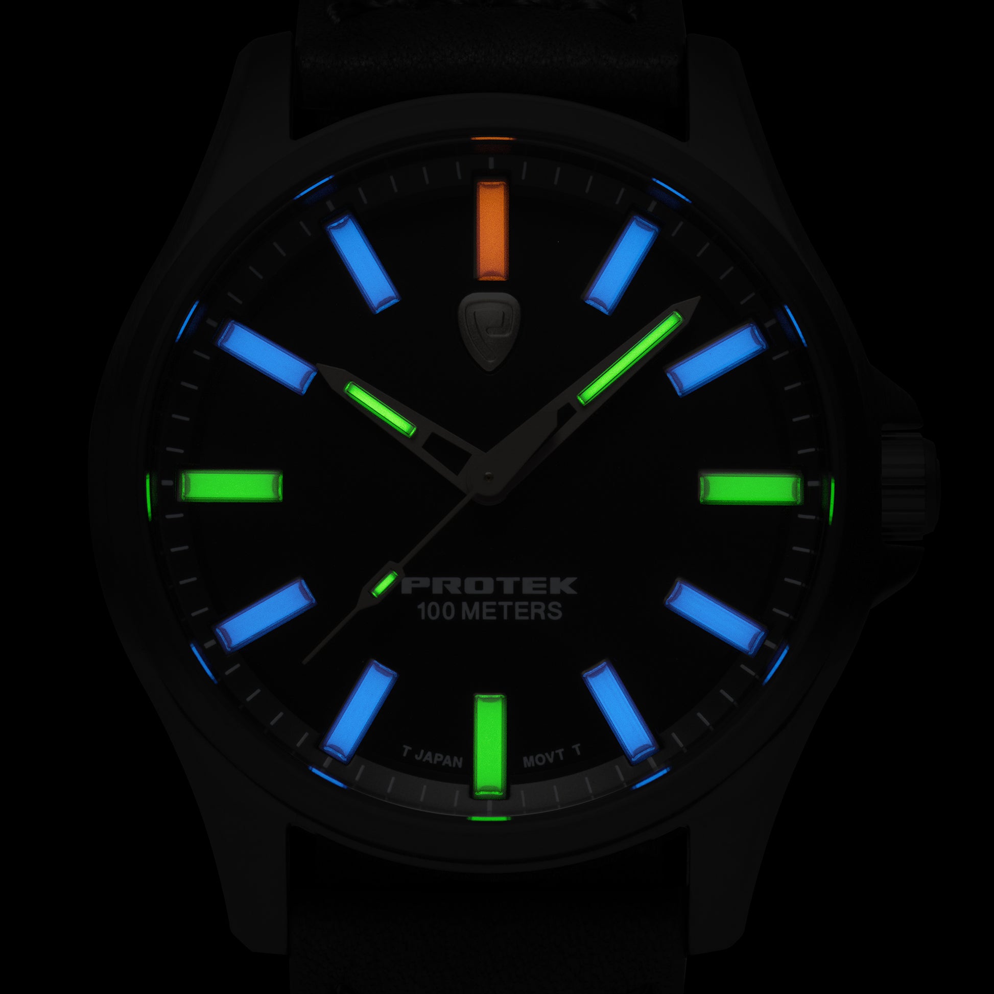 This 40mm titanium watch combines lightweight durability with a sleek, minimalist design, featuring a fixed bezel, water resistance to 100 meters, and a reliable Citizen/Miyota Super 2035 quartz movement with a 4-year battery. The Swiss Pro-Glo T100 illumination system, utilizing the largest tritium tubes, ensures 25 years of unmatched brightness for exceptional night visibility. Paired with a waterproof Italian leather strap and titanium buckle, this watch is a perfect blend of comfort, functionality, and modern style.